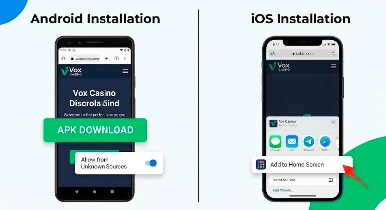 Besuchen Sie die offizielle Vox Casino Website über den mobilen Browser. Der Download-Button für casino Vox android befindet sich prominent auf der Startseite. Nach dem Herunterladen öffnen Sie die APK-Datei aus dem Download-Ordner.